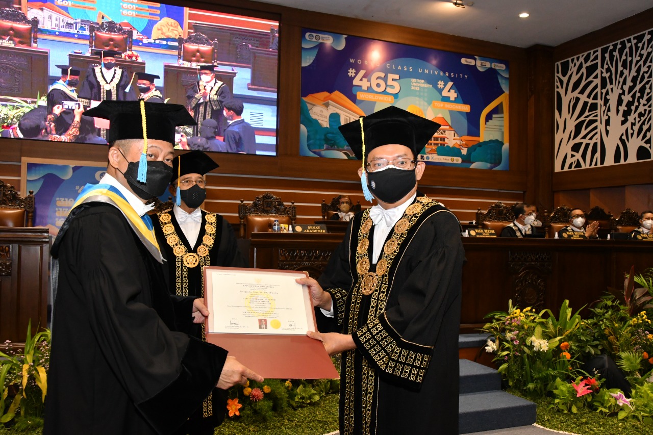 Pengukuhan berlangsung secara khidmat pada hari Selasa (24/11). Prosesi pengukuhan doktor honoris causa kepada alumnus S1 Akuntansi UNAIR itu bertempat di Aula Garuda Mukti, Kantor Manajemen Kampus C UNAIR.