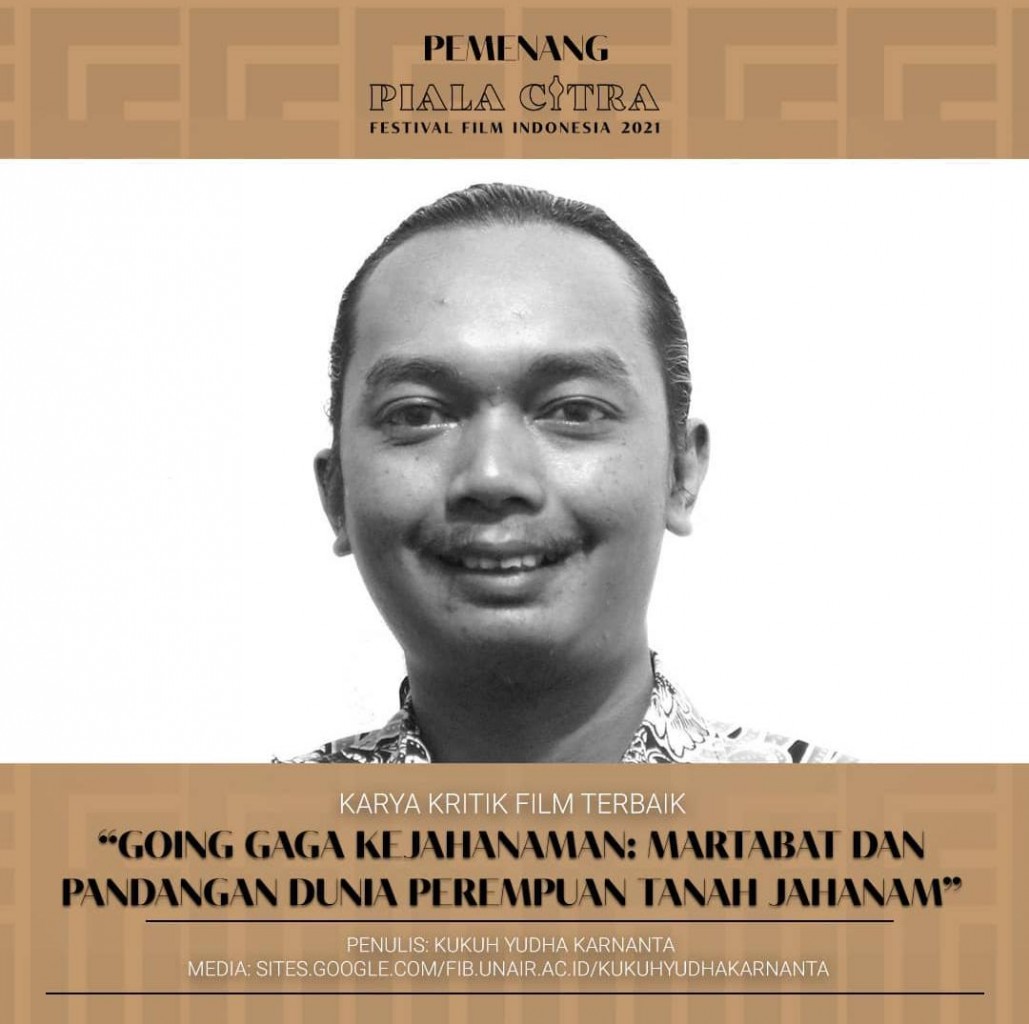 UNAIR NEWS – Dosen Fakultas Ilmu Budaya (FIB) Universitas Airlangga (UNAIR) berhasil meraih penghargaan dalam malam penghargaan Festival Film Indonesia (FFI) 2021. Dia adalah Kukuh Yudha Karnanta, S.S, M.A., yang memenangkan kategori Karya Kritik Film Terbaik melalui karya berjudul “Going Gaga Kejahanaman: Martabat dan Pandangan Dunia Perempuan Tanah Jahanam”.