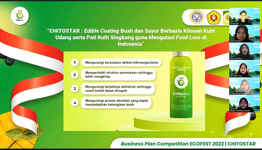 “Pencanangan atas solusi food loss ini tentu eco-friendly, karena kita memanfaatkan chitosan kulit udang dan pati kulit singkong,” tambahnya.