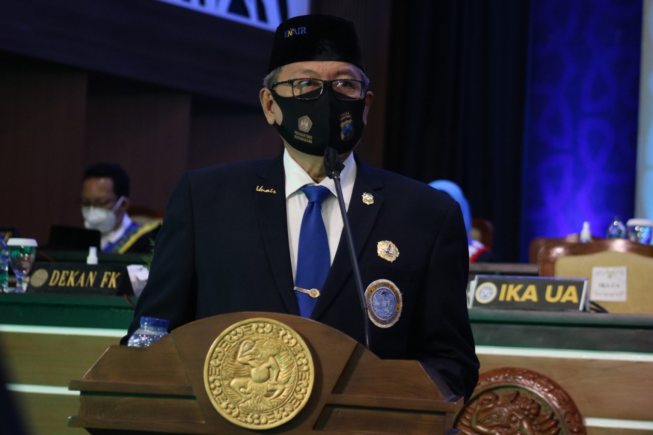 Dalam sambutannya, alumni Fakultas Ekonomi UNAIR tahun 1980 itu menyampaikan selamat dan sukses kepada para wisudawan yang telah berhasil menempuh dan menamatkan pendidikan pada masing-masing strata dan disiplin ilmu.