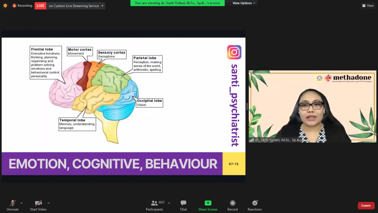 Pada webinar yang diadakan oleh METHADONE (Mental Health and Productivity During COVID-19 Pandemic), platform kesehatan mentalFakultas Kedokteran Universitas Airlangga (UNAIR) ini, dr. Santi menyampaikan pentingnya mengatur waktu dalam melakukan kegiatan secara daring.