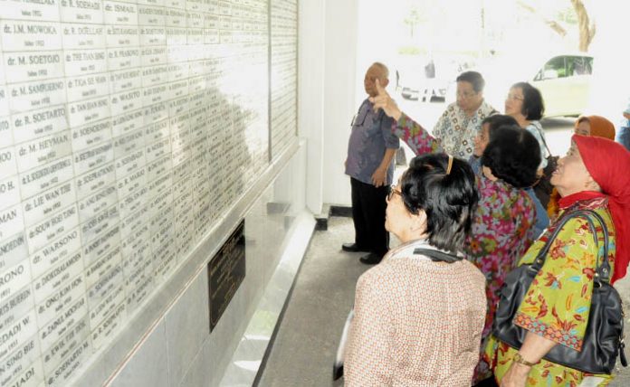 Para alumnus Fakultas Kedokteran Universitas Airlangga tahun angkatan 1959 melakukan napak tilas ke kampus kedokteran tertua kedua se-Indonesia. (Foto: Sefya Hayu I.)
