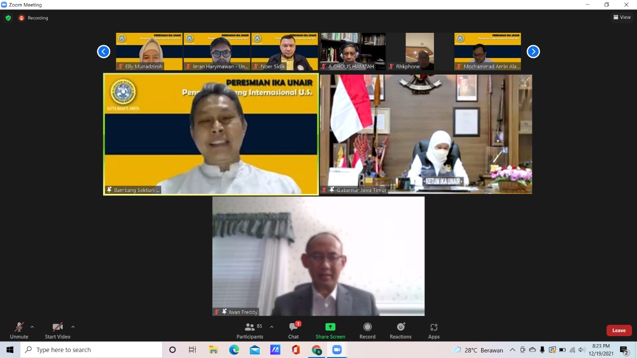 UNAIR NEWS – Para alumni Universitas Airlangga (UNAIR) berkumpul secara daring untuk menyaksikan Peresmian dan Pelantikan Pengurus Ikatan Keluarga Alumni (IKA) Cabang Internasional Amerika Serikat. Perhelatan pada Minggu (20/12) ini juga disambut positif oleh Dra. Hj. Khofifah Indar Parawansa, M.Si. sebagai ketua umum IKA UNAIR.