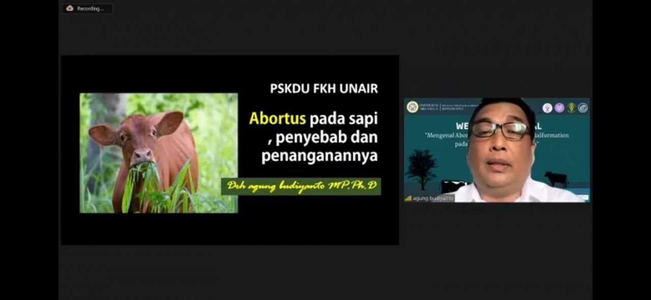 Karena minimnya sosialisasi kepada peternak dan masyarakat umum tentang abortus pada sapi, Divisi Swine and Ruminant Care (SRC) Himpunan Mahasiswa Kedokteran Hewan (HMKH) UNAIR di Banyuwangi mengadakan Webinar Nasional dengan mengangkat tema “Mengenal Abortus , Stillbirth dan Fetal Malformation pada Ternak dan Penyebabnya”.