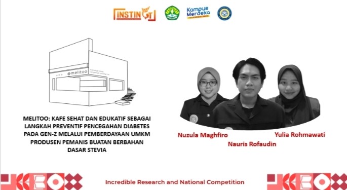 Dalam kompetisi itu, mereka memperkenalkan inovasi MELITOO. MELITOO merupakan inovasi kafe sehat dengan langkah mencegah diabetes pada Gen Z melalui pemberdayaan UMKM produsen pemanis buatan stevia.