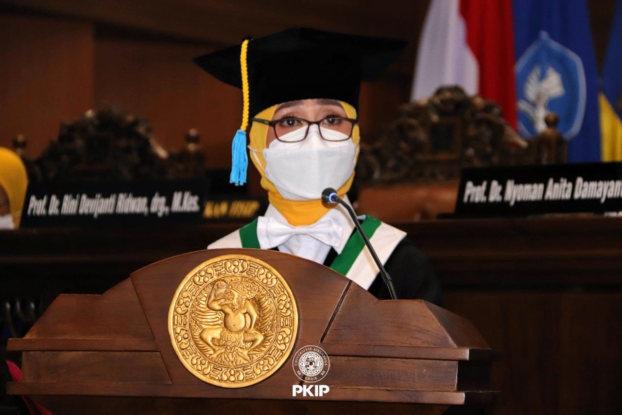 UNAIR NEWS – Universitas Airlangga kembali menggelar kegiatan pengukuhan guru besar pada Rabu (15/12/2021). Dari keempat guru besar yang dikukuhkan, salah satunya yakni Prof. Rini Devijanti Ridwan, drg., M.Kes. Dalam orasinya, Prof. Rini memaparkan mengenai oral atau dental microbiology masa lalu, saat ini, dan masa datang dalam mewujudkan Indonesia bebas karies di tahun 2030.