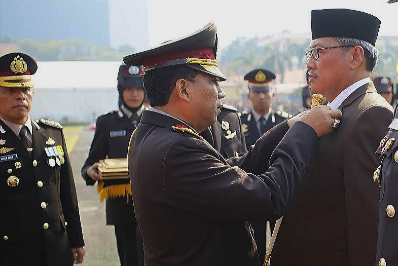 UNAIR NEWS – Ada pemandangan ganjil, istimewa, dan tidak biasa dalam peringatan Hari Bhayangkara 2018 di Lapangan Polda Jatim, pekan lalu. Seorang warga sipil itu berbaris ala militer bersama 16 perwira menengah Polri. Gaya berbarisnya tegap, bisa menyesuikan. Seirama. Tidak ada gestur berbeda diantara mereka. Setelah itu ia menerima penghargaan paling awal diantara belasan pamen Polri berprestasi tersebut.