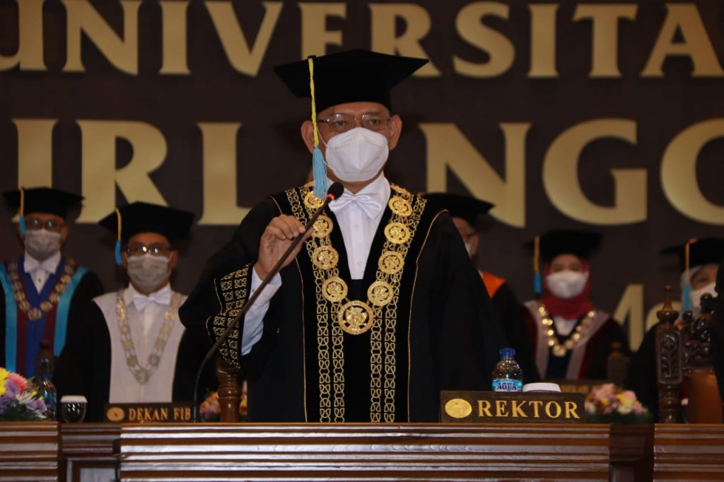 “Saya menyampaikan selamat kepada para wisudawan yang untuk kali pertamanya selama hampir dua tahun wisuda dilakukan secara daring dan hybrid, hari ini, karunia luar biasa, anda bisa wisuda secara luring,” ungkap Rektor UNAIR.