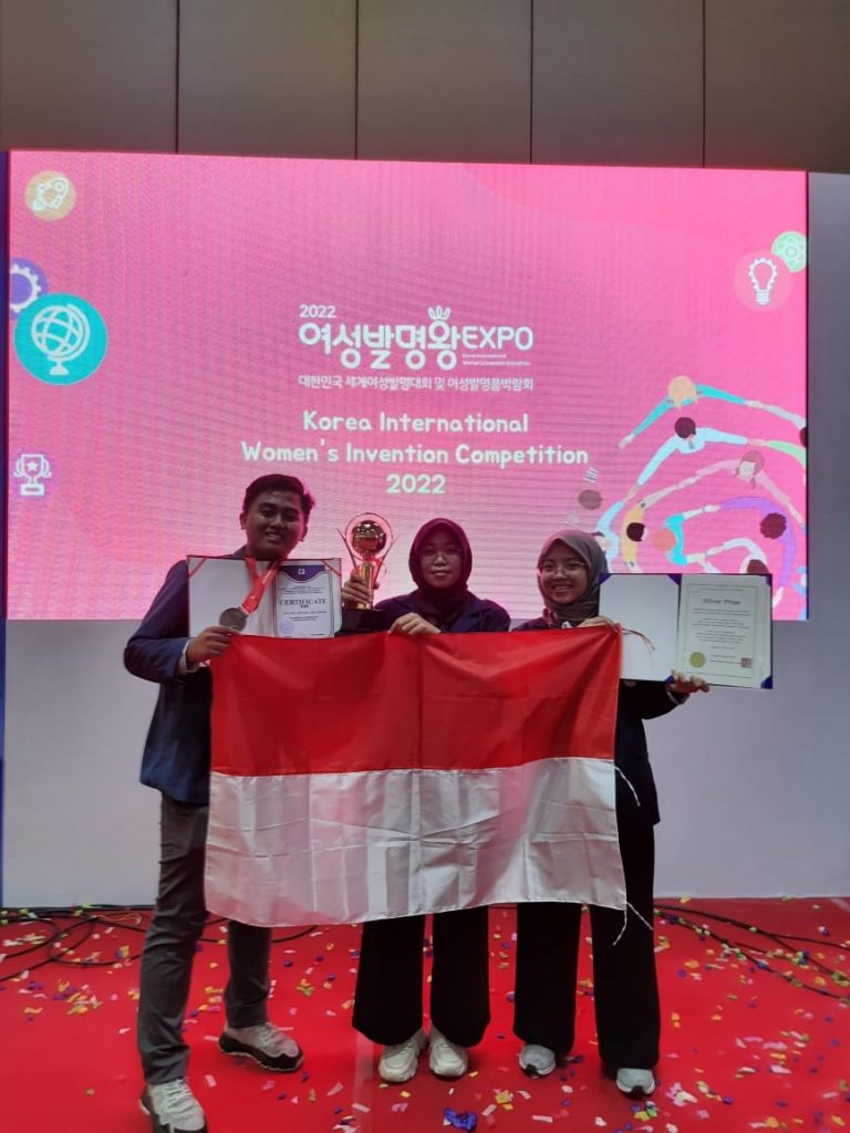 Ketiganya berhasil meraih dua penghargaan yaitu Silver Prize KIWIE dan Tajikistan Award ‘National Center For Patent and Information’ Ministry of Economic Development and Trade of The Republic of Tajikistan dalam ajang 15th Korea International Women’s Invention Exposition (KIWIE) 2022 pada Kamis-Sabtu (25-27/08/2022) di Seoul, Korea Selatan.