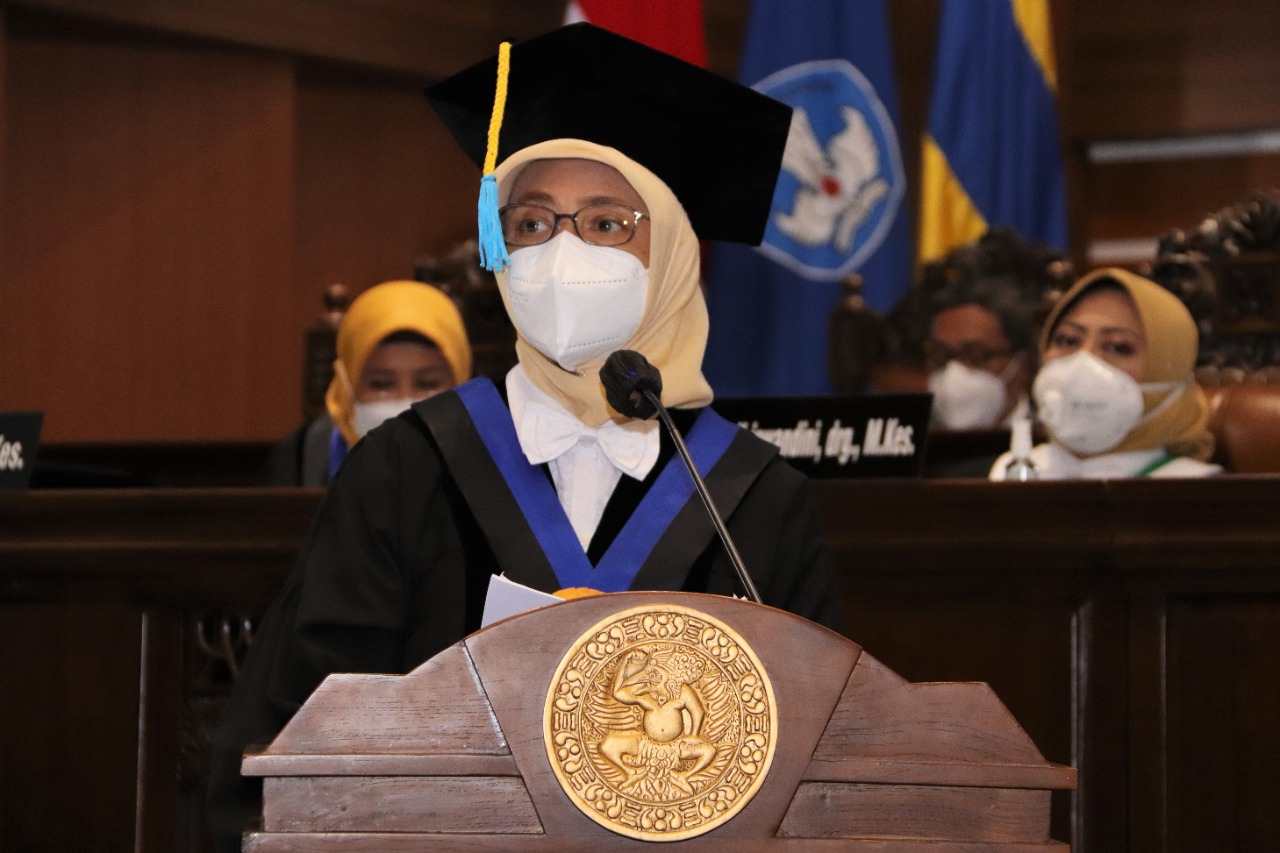 UNAIR NEWS – “Perkembangan dalam industri kimia harus dibarengi dengan upaya perlindungan lingkungan, salah satunya dengan menerapkan prinsip green chemistry,” begitulah sambutan yang diungkapkan Prof. Dr. Hartati Dra., M.Si. saat dikukuhkan menjadi Guru Besar, Rabu (8/12/21).