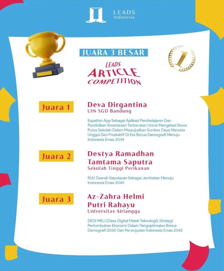 Sumber:Â https://www.unair.ac.id/2022/05/20/gagas-dedi-meli-mahasiswa-unair-raih-juara-iii-dalam-ajang-article-writing-leads-indonesia/