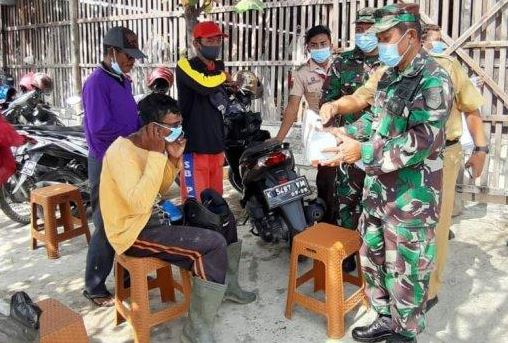 Sebanyak 12.500 buah masker dibagikan pada para pekerja dan masyarakat yang ada di pelabuhan Tasikagung Rembang.