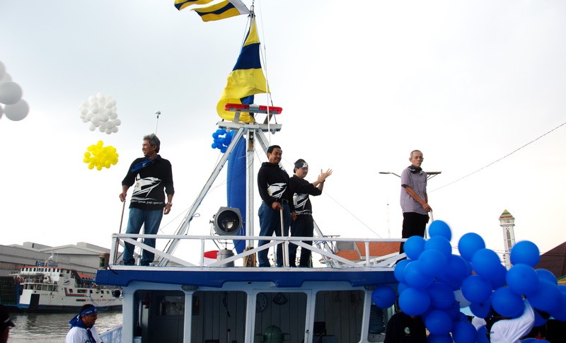 Dekan Fakultas Kedokteran Prof. Soetojo, Sekjen PP IKA-UA Dr. Budi Widajanto, Ketua IKA-UA Wilayah Jawa Timur Dr. Hendy Hendarto, Sp.OG., dan Ketua IKA FK UNAIR Dr. Pudjo Hartono, dr., Sp.OG., menandai launching dengan bersama-sama memencet sirine (klakson) kapal. Ratusan alumni dan undangan yang hadir pun sontak bersorak-sorai.
