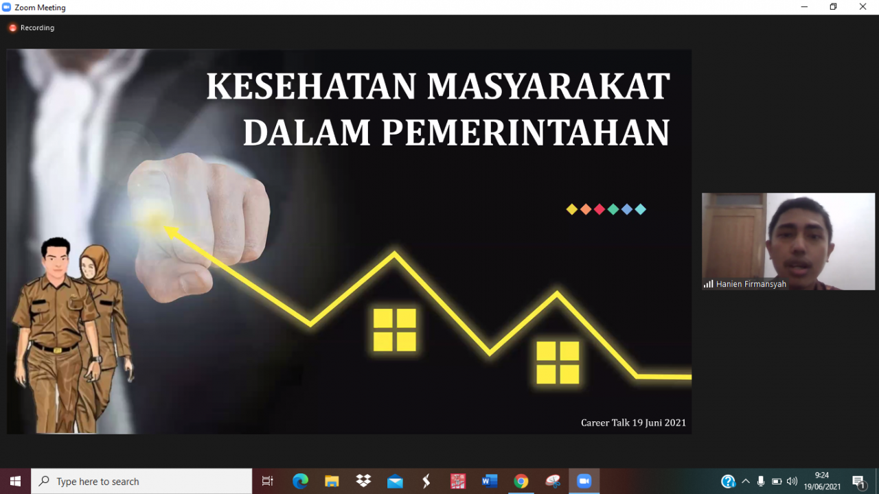 UNAIR NEWS – Seminggu sebelumnya telah diadakan Career Talk 1 dengan mengundang Deni Frayoga, S.KM dari CISDI (Center for Indonesia’s Strategic Development Initiatives) sebagai pemateri. Namun di Career Talk kedua yang diadakan pada 19 Juni 2021 tersebut, panitia mengundang 2 pemateri yakni I Gusti Ngurah Edi Putra, S.KM., M.A. dan Hanien Firmansyah, S.KM.