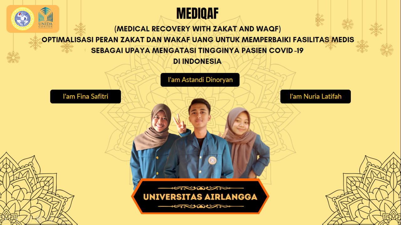 Pada LKTI yang diadakan oleh Universitas Darussalam Gontor tersebut, ketiga mahasiswa UNAIR mengusung gagasan Medical Recovery with Zakat and Waqf (MEDIQAF). Atas gagasan itu, mereka berhasil menyabet juara I dan menyisihkan 13 tim lainnya.