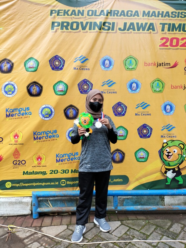 NEWS UNAIR – Mahasiswa Universitas Airlangga (UNAIR) kembali menorehkan prestasi di tingkat nasional. Kali ini, mahasiswa Teknik Industri UNAIR, Jinggan Kumalatungga Lani, berhasil meraih perak pada Pekan Olahraga Mahasiswa Provinsi (POMPROV) Jawa Timur pada Sabtu (26/03/2022).