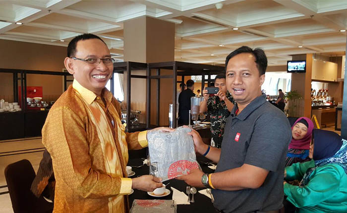 Rektor UNAIR, Prof. Nasih (kiri), Saat Memberikan Cinderamata Kepada Jojo Raharjo, Alumni yang Berkiprah di CNN TV Indonesia (Foto: Istimewa)