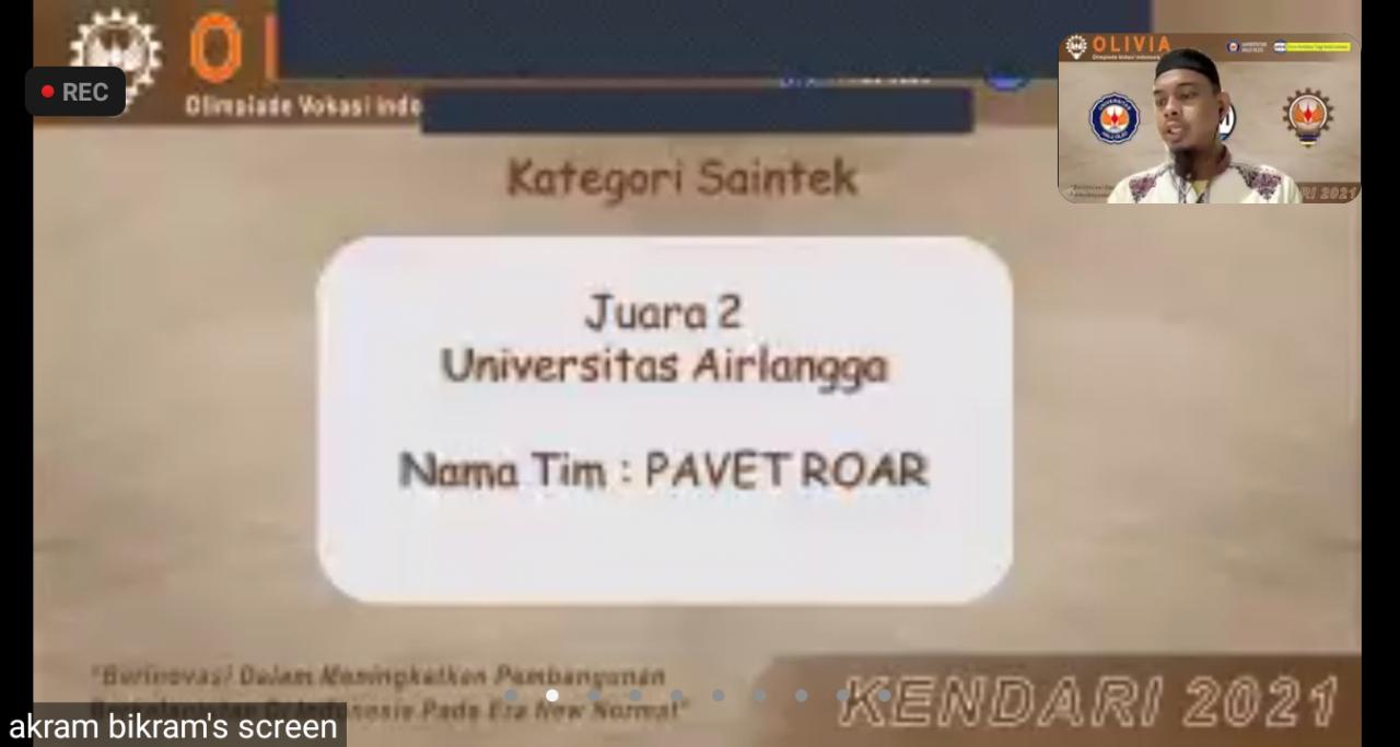 Meski Awalnya sempat pesimistis karena bersaing dengan beberapa perguruan tinggi raksasa lainnya. Namun tim Pavet Roar berhasil membuktikan diri. Timnya berhasil mengungguli 39 peserta dari perguruan tinggi lainnya.