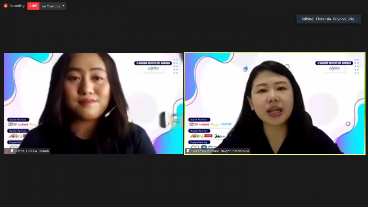 Hadir sebagai narasumber Florensia W. Daryanto selaku founder Bright Internships. Pada kesempatan tersebut, wanita yang akrab disapa Flo itu memaparkan tentang perbedaan tentang dunia pekerjaan dulu dan sekarang.