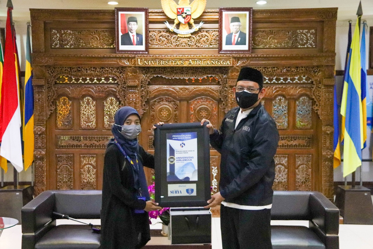 Sementara itu Rektor UNAIR Prof Moh Nasih mengungkapkan terima kasih atas penghargaan yang telah diberikan oleh Harian Surya. Menurutnya, penghargaan itu diberikan atas kerja kolektif, baik para peneliti, dosen, tenaga pendidik, mahasiswa, maupun alumni UNAIR yang mendukung kerja UNAIR dalam memberantas pandemi Covid-19.